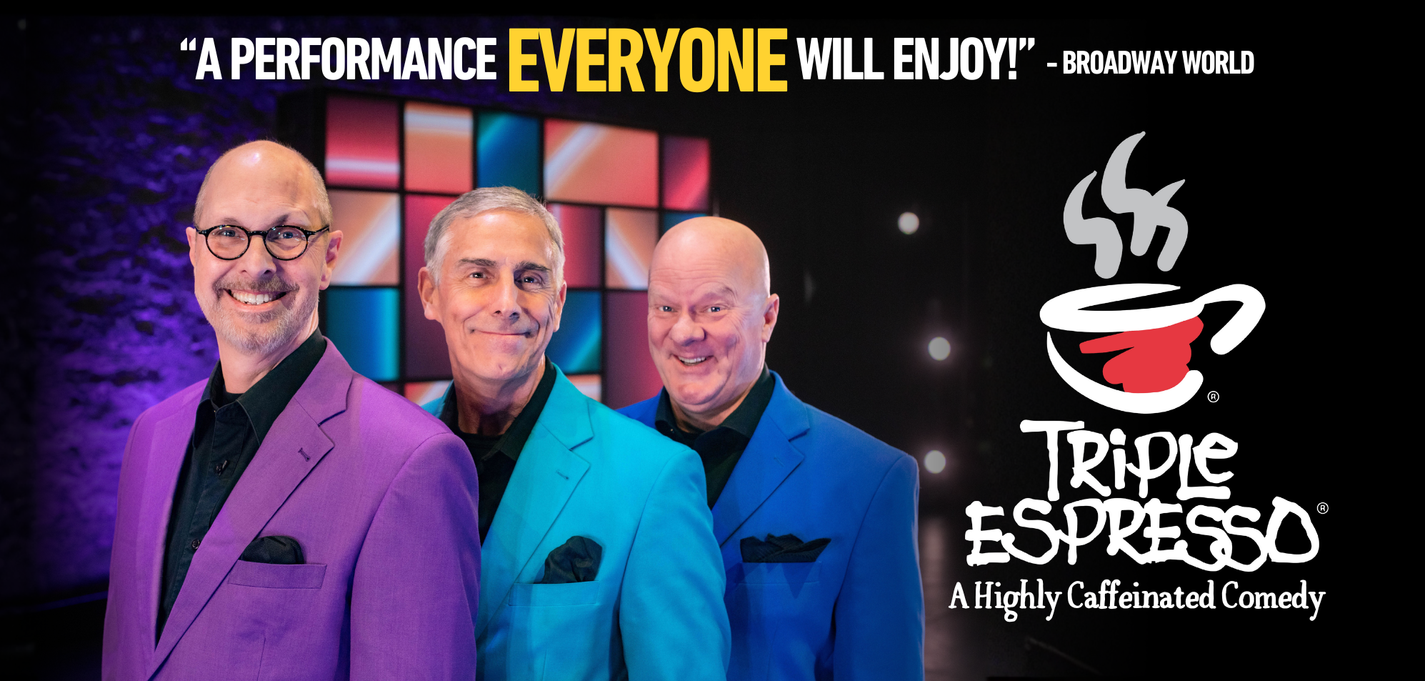This three-man show has entertained over 2 million people in over 50 cities in 6 countries. The show has been performed in the West End (The Arts Theatre) and continuously ran in Minneapolis and San Diego for over a decade. Triple Espresso has mass appeal, shown by its record as being the longest-running show in Minneapolis, MN, Des Moines, IA, San Diego, CA, and even Dublin, Ireland. CLICK HERE to learn more.